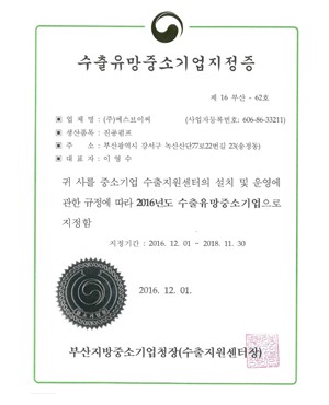 SVC-수출유망중소기업지정증